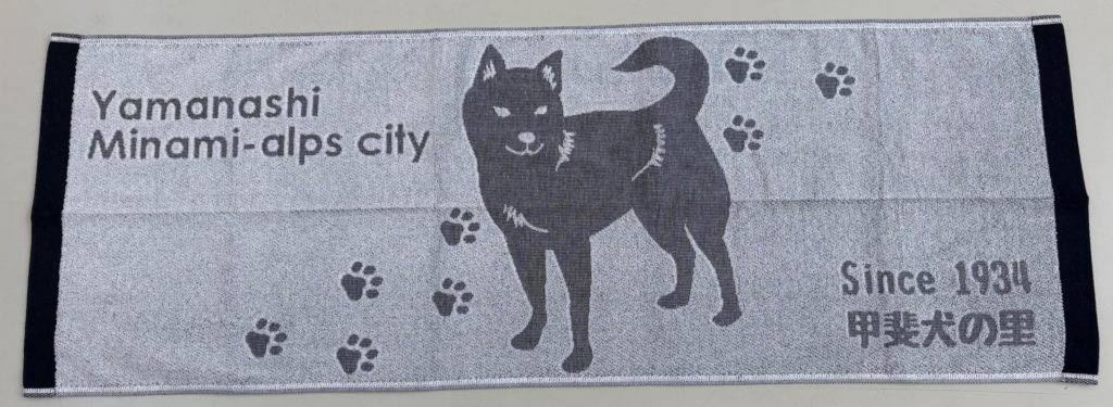 タオルの真ん中に大きく甲斐犬がデザインされています。