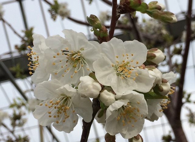 露地のさくらんぼの花…こんな真っ白い花から真っ赤なさくらんぼが実ります。