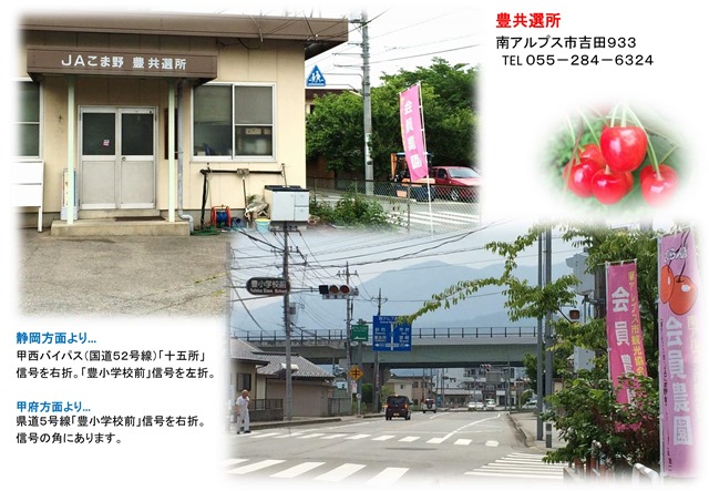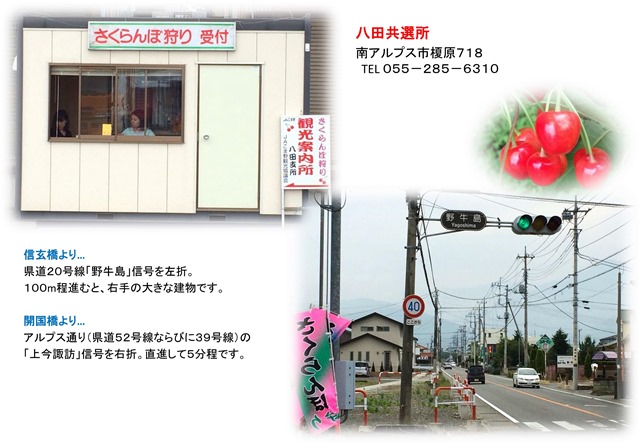 ①JAこま野の受付場所でさくらんぼ狩りの受付をしてください。