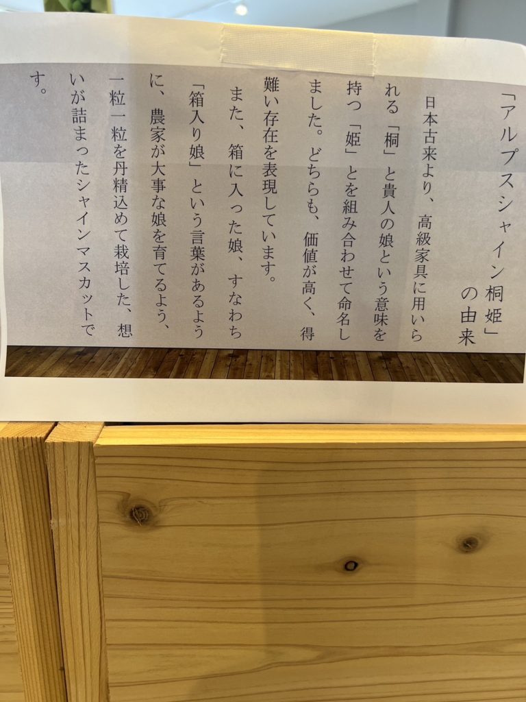 JA南アルプス市が厳選したシャインマスカット「アルプスシャイン桐姫」。