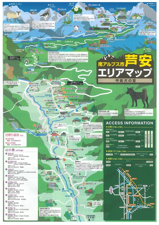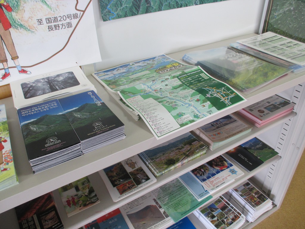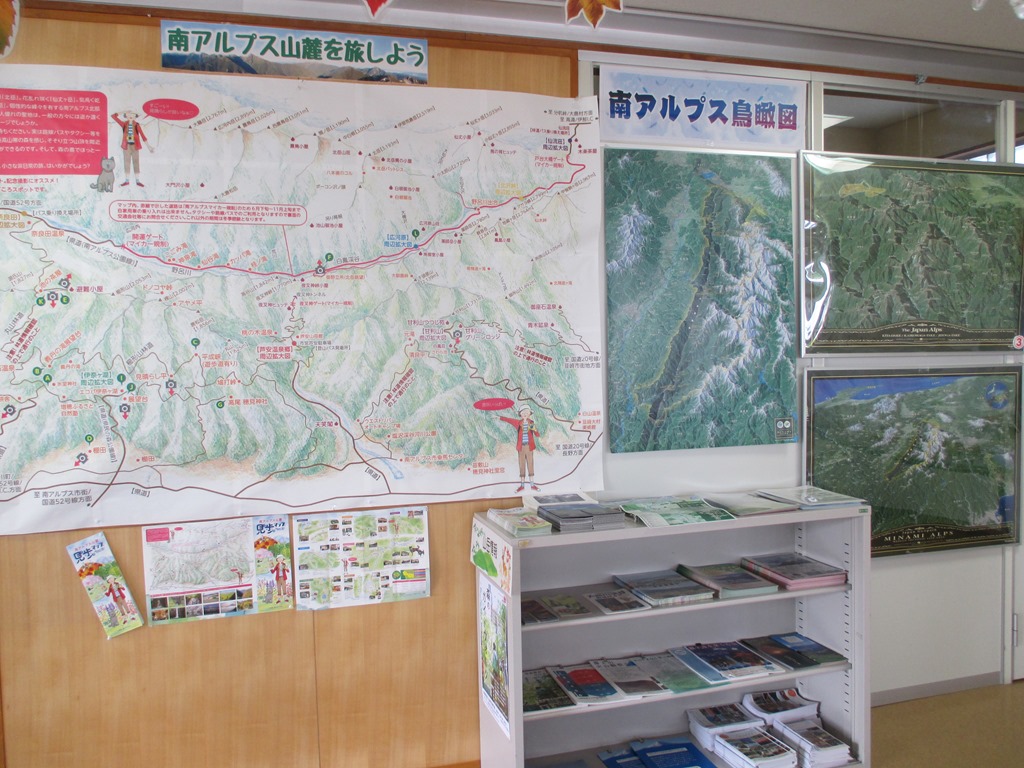道の駅しらねも秋らしい展示で皆さまをお迎えしています。山の情報コーナー、市内の観光情報、山梨県や関東近辺の情報なども、わかりやすくお知らせしています。新しくなった「南アルプス市芦安エリアマップ」もおいてあります。ぜひご活用ください。