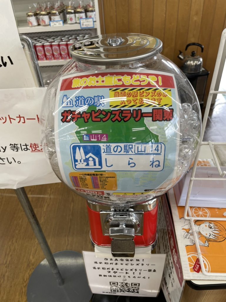 JA南アルプス市道の駅しらね農産物直売所にて「道の駅しらねピンバッチガチャ」が新たに設置(レジ横)されています。