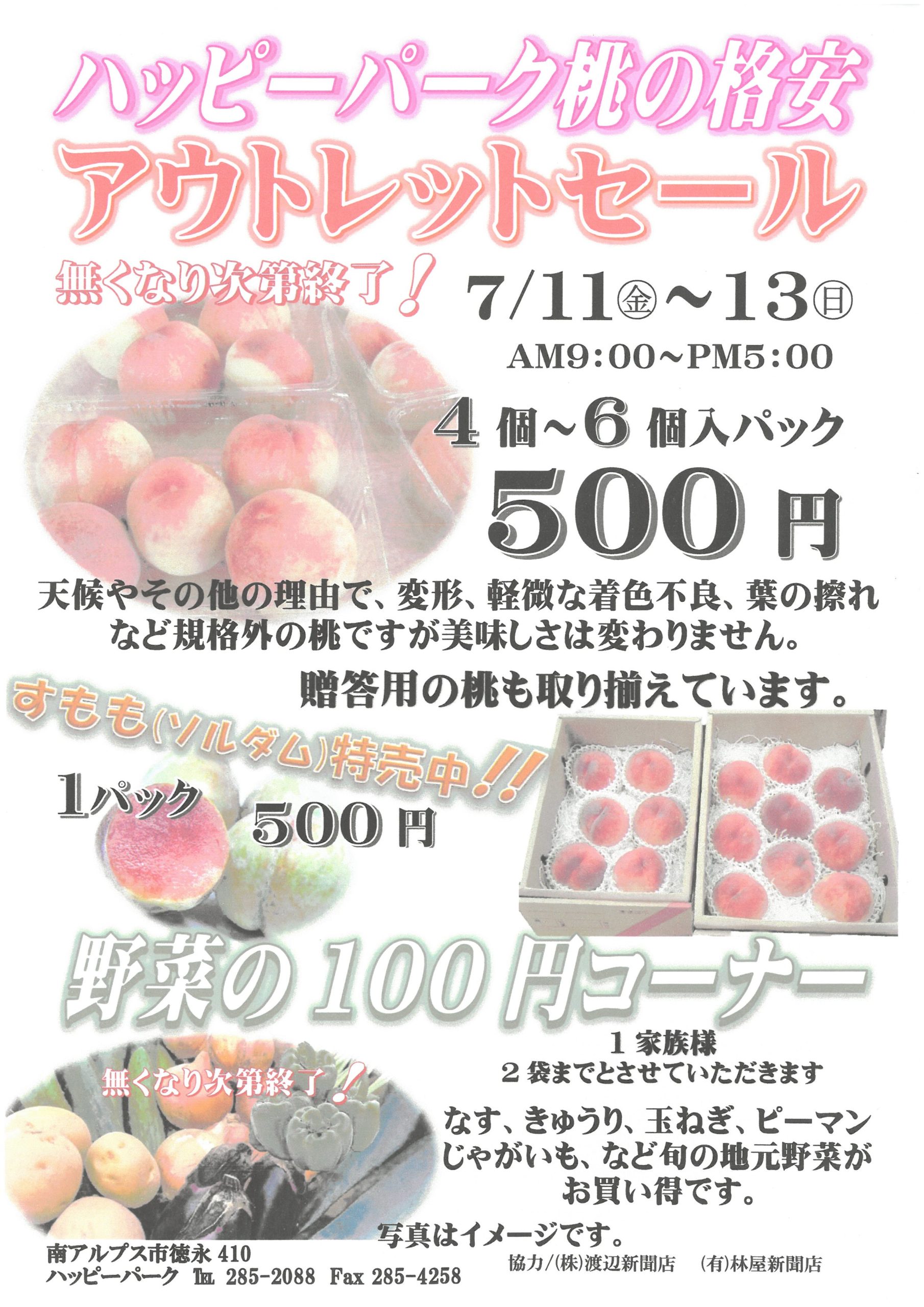 ハッピーパークではねだし桃のアウトレットセールを開催中!