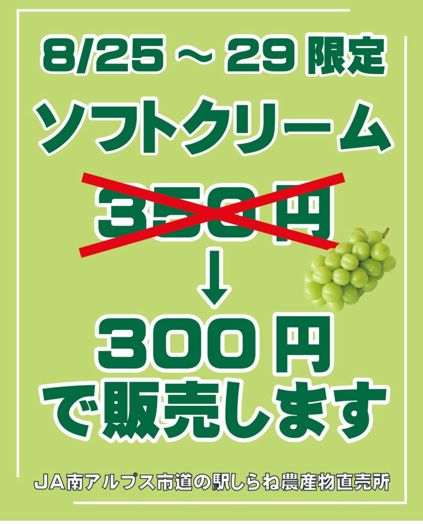 ソフトクリームもシャインマスカットの時期になりました。