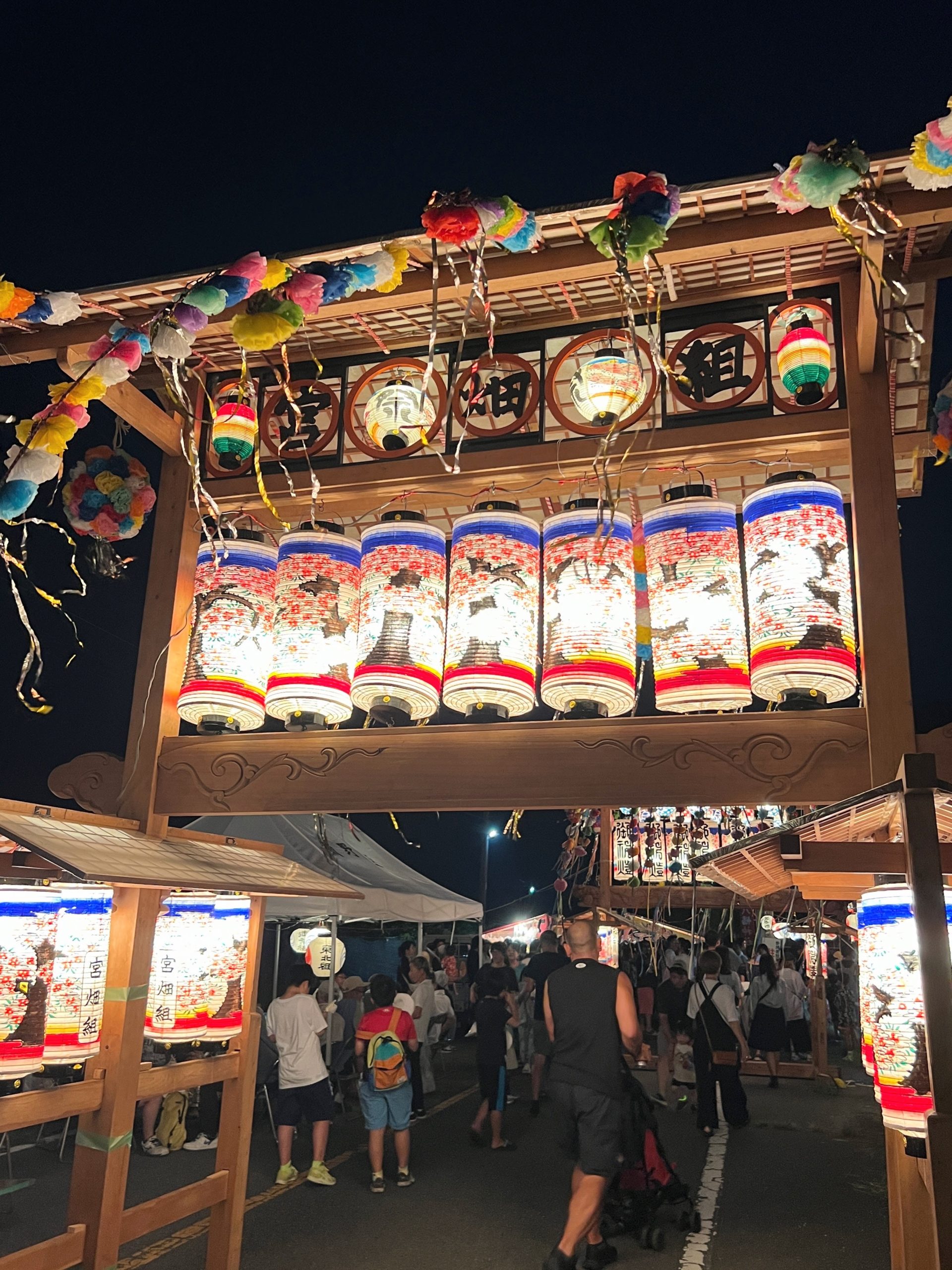 地区ごとにちょうまたぎが設置され、夕暮れ時に提灯に灯がともります。