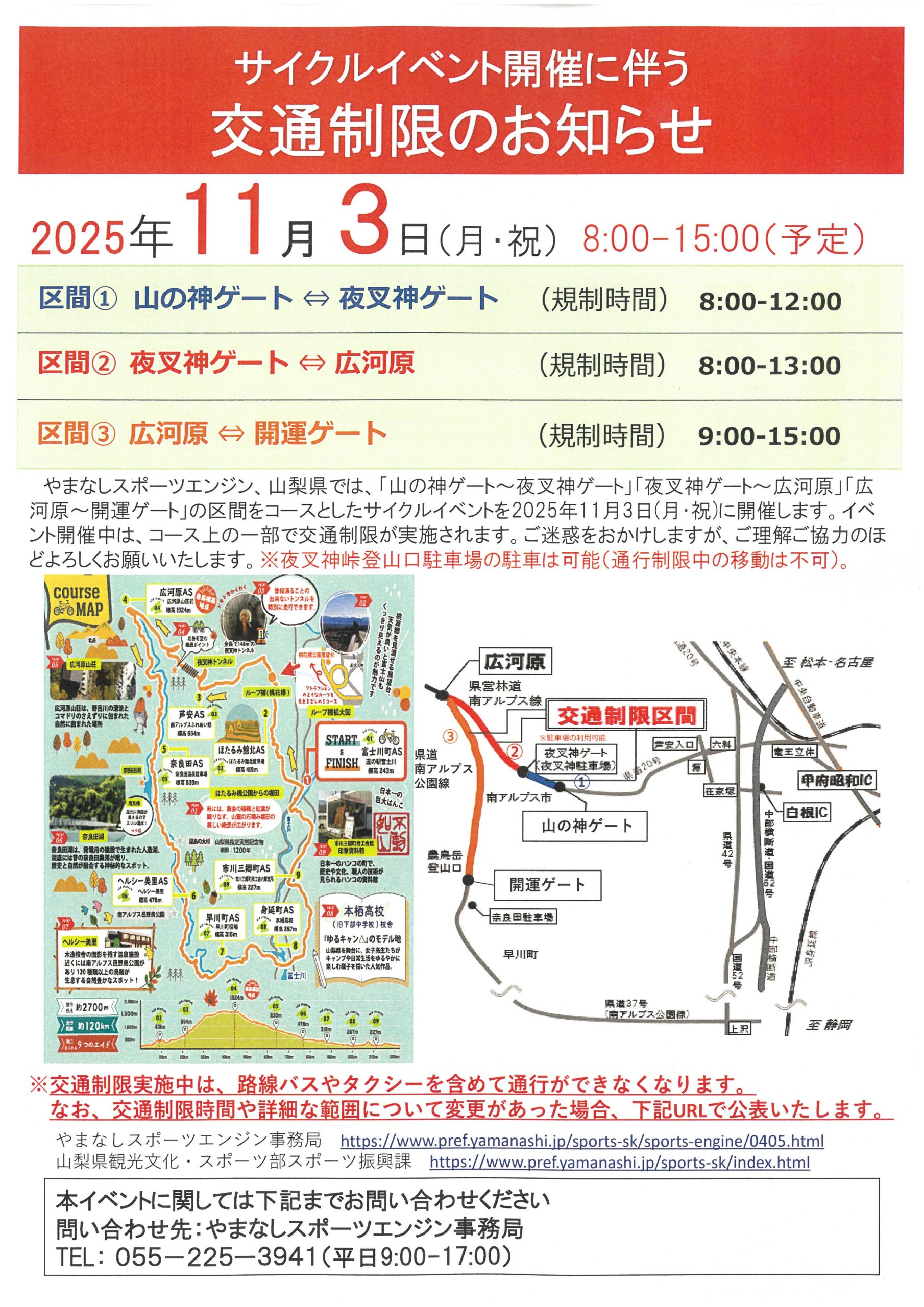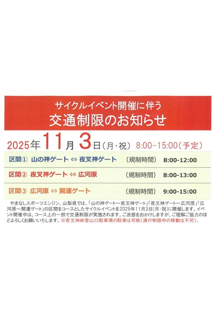 なお、交通制限時間や詳細、変更等の場合は下記URLで公表しますのでご確認お願いします。