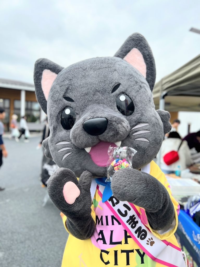 開始時間の10時前からお客様がちらほらと店舗を見て回られていて、かいまるくんが登場すると撮影タイムに!