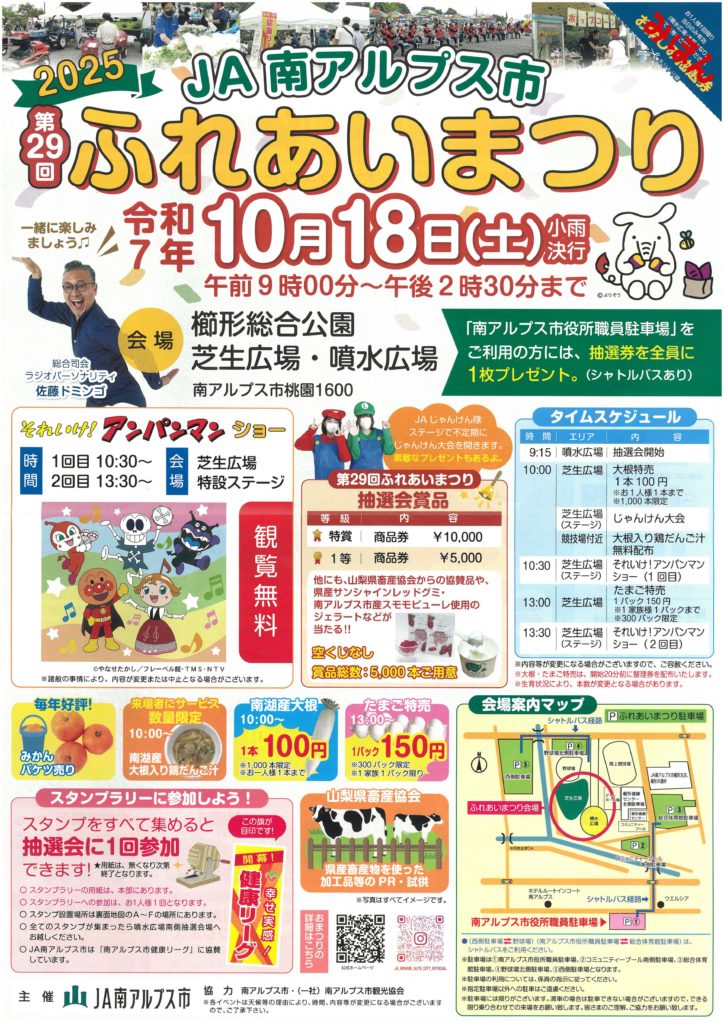 毎年恒例!JA南アルプス市主催の大人気のイベント「JAふれあいまつり」が開催されます。