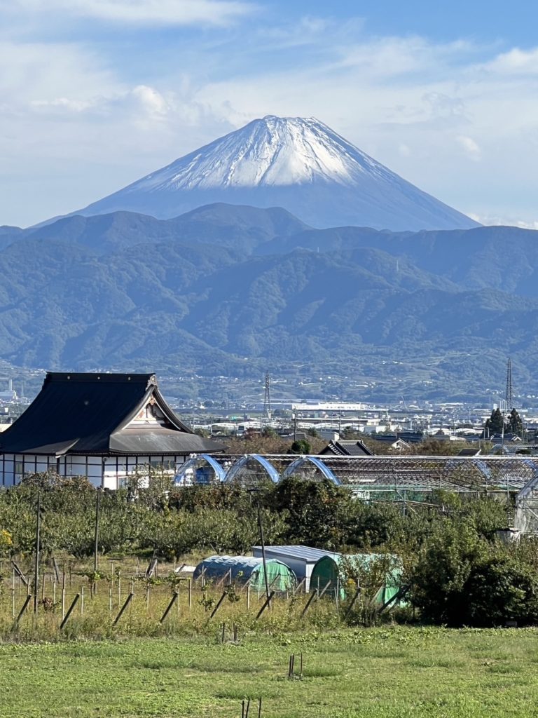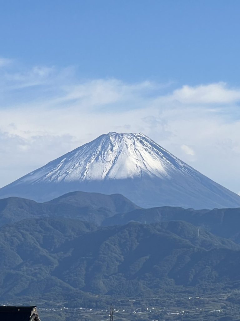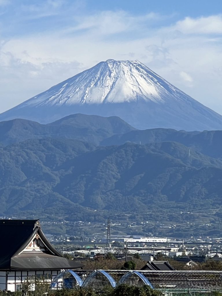 本日、10/23に富士山の初冠雪の様子を見ることができました!このところ南アルプス市のお天気はぐずついていましたが、久しぶりの青空で気分も上がります。富士山の初冠雪ともあって秋から冬へと季節の移ろいを楽しめる季節です。