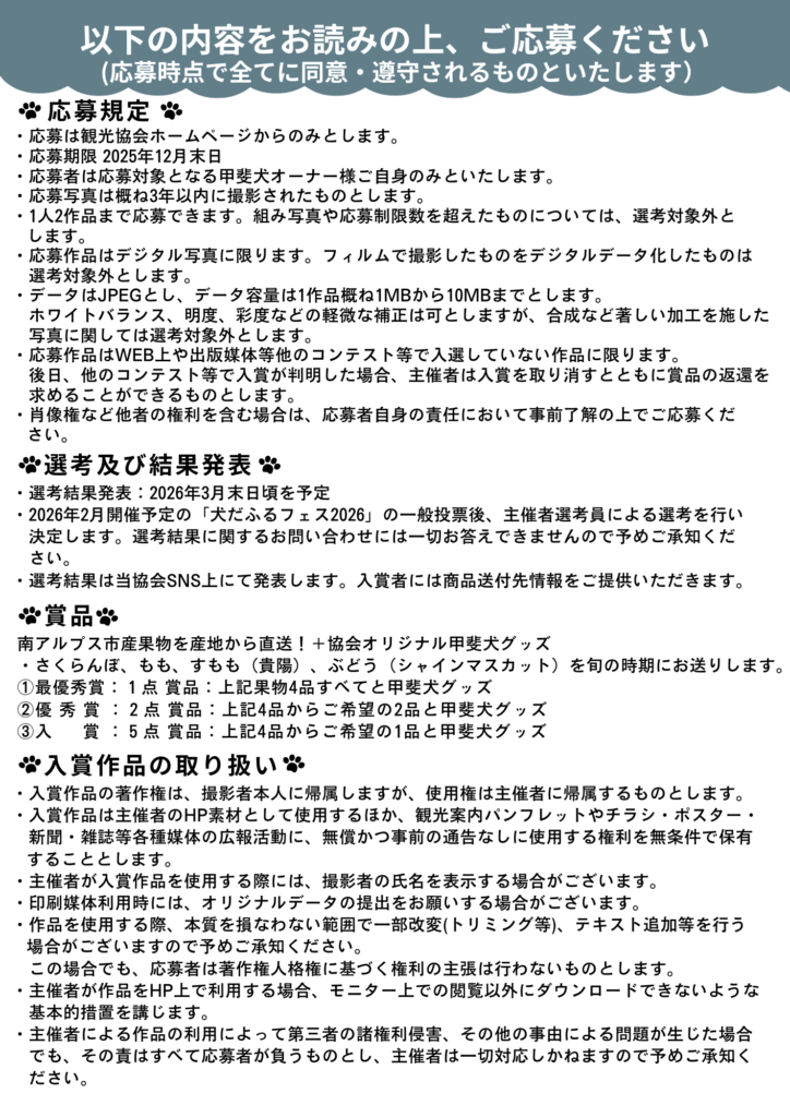 【第2回かわいい甲斐犬フォトコンテスト】の作品募集は、2025年12月31日(水)をもって終了いたしました。