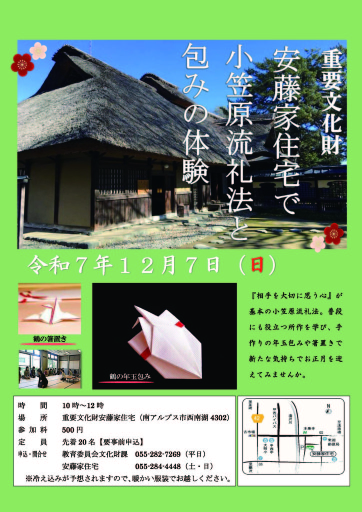 - 場所 重要文化財安藤住宅(南アルプス市西南湖4302)