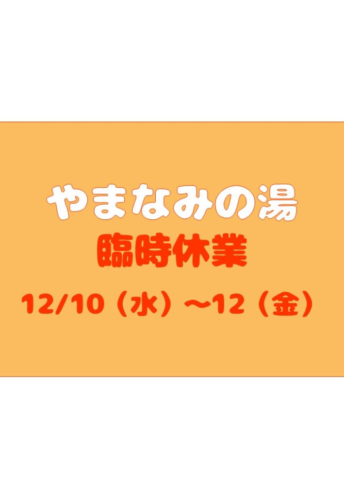 浴室内修繕工事のため12/10(水)~12(金)まで休業。