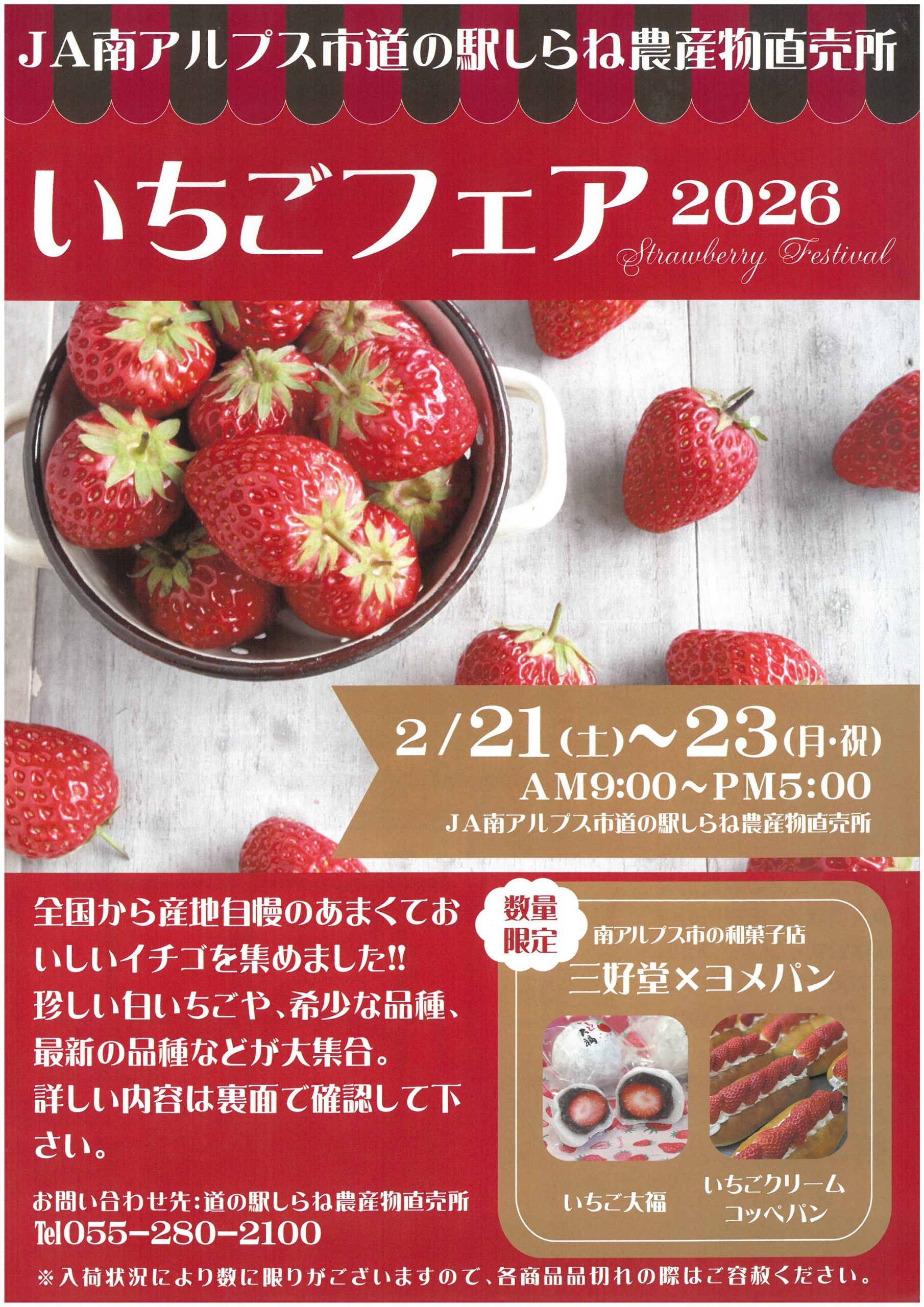 AM9:00~PM5:00 - 場所 JA南アルプス市道の駅しらね農産物直売所