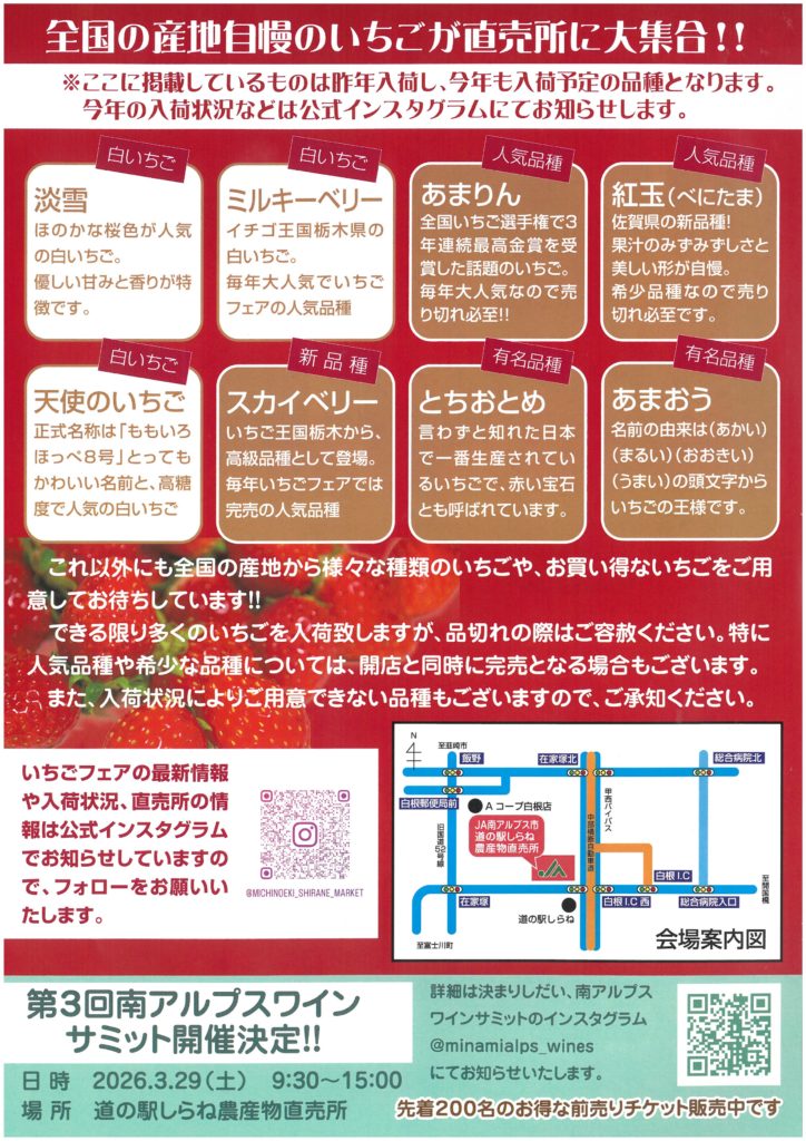 全国産地のおいしいいちごが道の駅しらね農産物直売所に大集合!