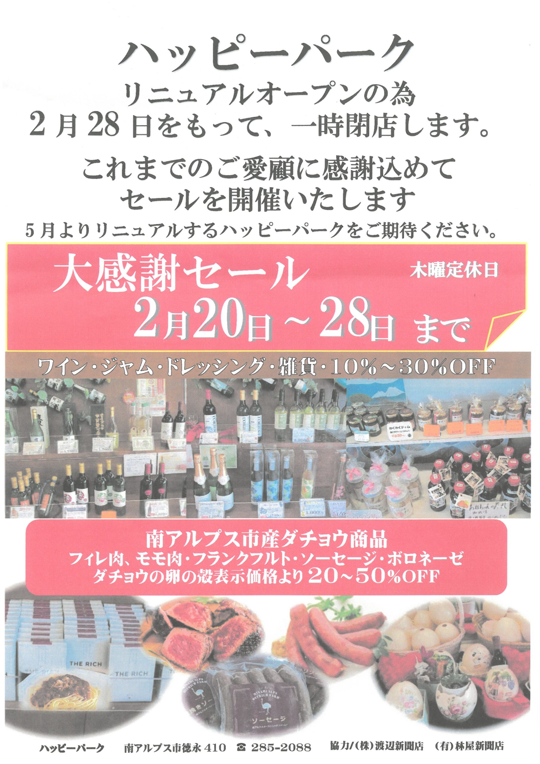 リニューアルオープンのため、2月28日(土)をもって一時閉店します。