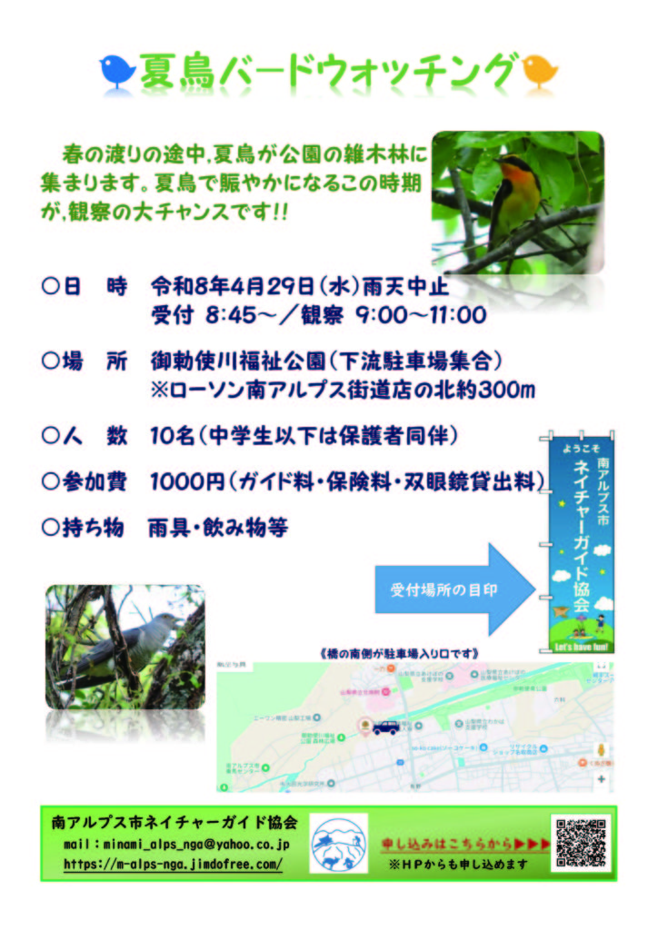 春の渡ってきた夏鳥たちを観察するバードウォッチングツアーです。