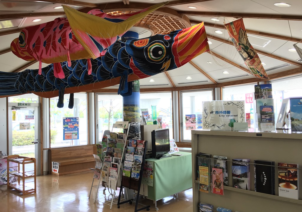 記念切符や道の駅スタンプは、入って左の観光協会窓口で販売、設置しております。