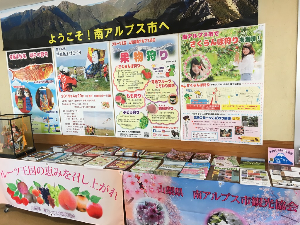 今回は中の展示を一新し、山の情報コーナー、市内の観光情報、山梨県や関東近辺の道の駅の情報などわかりやすくお知らせしていきます。よろしくお願いいたします。