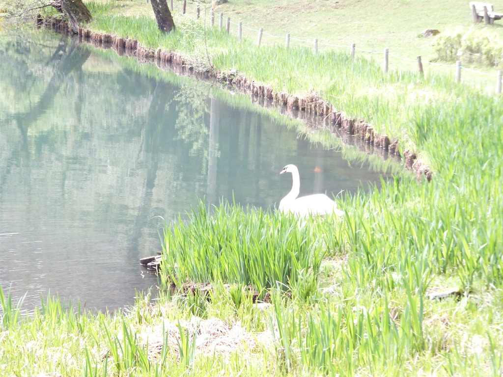 菖蒲池では白鳥が優雅に泳ぐ姿が見られました。