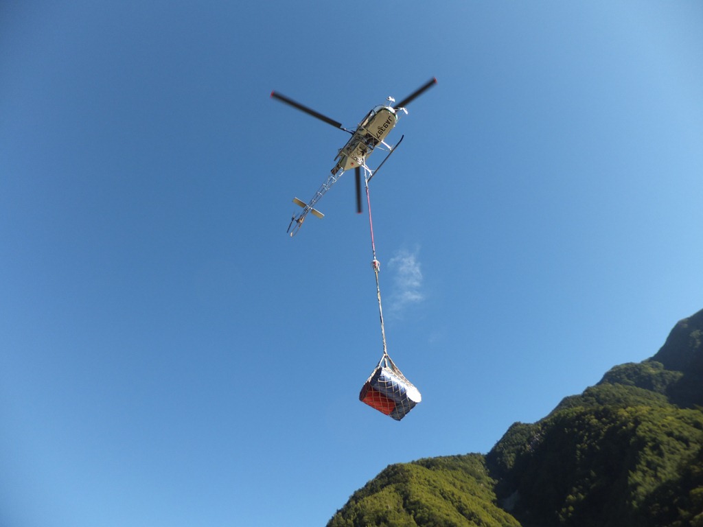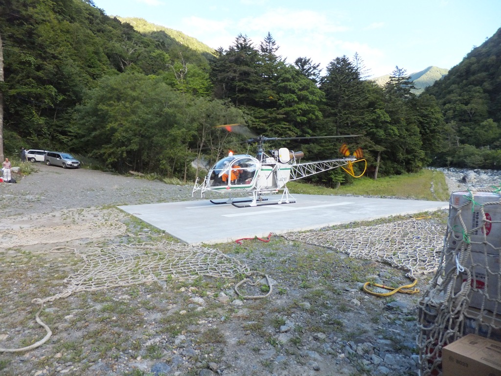 今日はヘリコプターで山小屋へ荷揚げです。