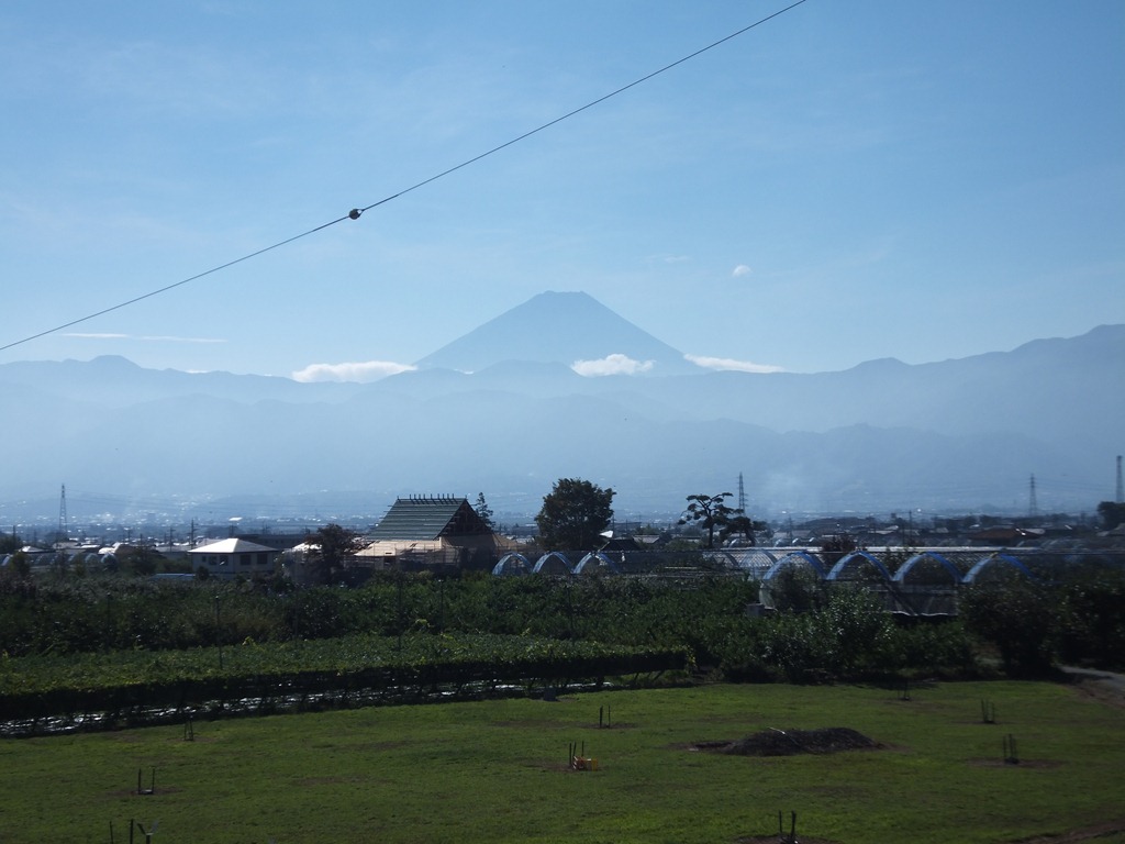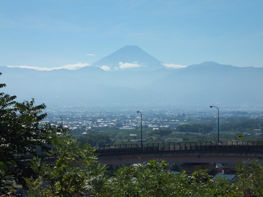 南アルプス市観光協会の事務所がある「道の駅しらね」付近からは、南東方向に富士山が見えます。