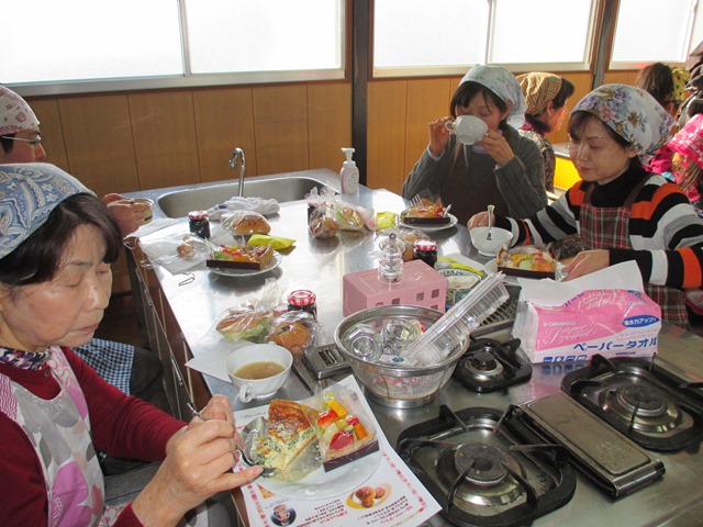 昼食を兼ねて行った試食会のメニューは、アニーズカフェさん、ベーカリールーブルさん、クレープシルフさんから2種類ずつ合計6点と観光協会特製のオニオンスープ。美味しく楽しい時間をみんなで過ごしました。