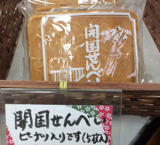開国せんべいは、南アルプス市の釜無川にかかる開国橋にちなんだせんべいです。