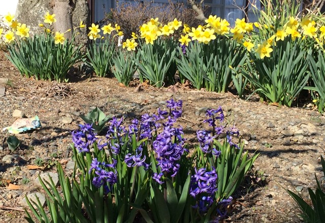 早咲きの水仙。こちらの畑にはヒヤシンスやチューリップも… 暖かい日差しをたっぷり浴びて春景色!
