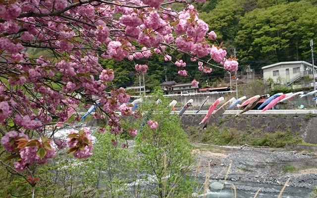 左…落合地区のハナミズキ。約1㎞に渡って咲いています。