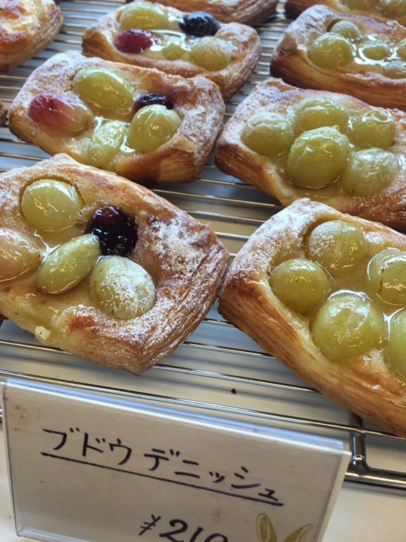 今のおススメは、シャインマスカットなど市内で採れたぶどうをを使ったデニッシュや、