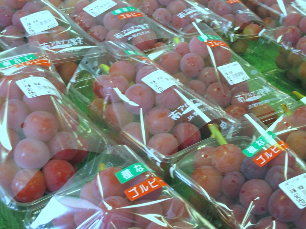 農産物直売所では巨峰・ピオーネ・ゴルビー等の販売が始まっています。
