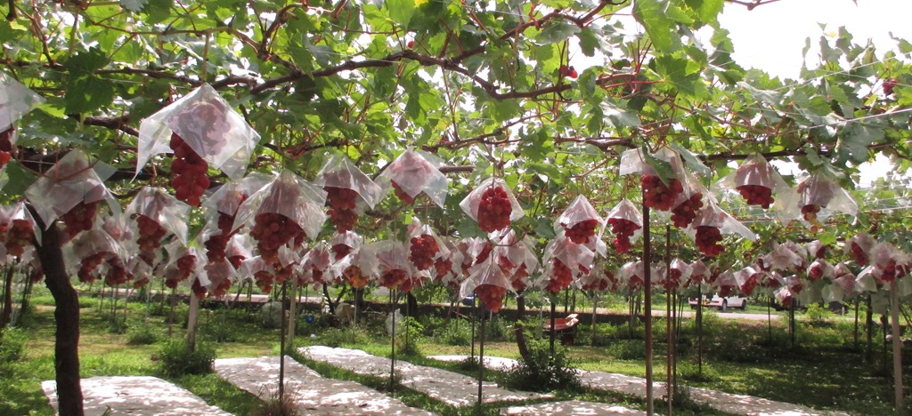 市内の農園では出荷間際のブドウが沢山!!美味しそうに生っていました