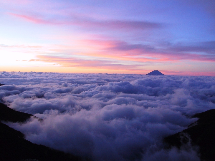 また、北岳山荘より見られる「朝の富士山」もご紹介いたします。
