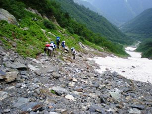 現在の大樺沢については、残雪も残っていますが自然と出来た「雪を避ける道」を利用し「雪上歩行」することなく通行がなされています。