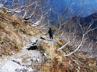 【白根御池小屋(草すべり)・大樺沢】への分岐地点頃からダケカンバの樹林が現れ