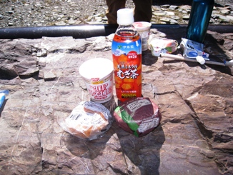 昨日の登りで飲料水を1リットル吸水してしまったので、山荘から購入した北岳の水と持参したポカリスエットの粉末を混ぜ特性北岳ドリンクを作り、そして、アミノバイタルを一袋。