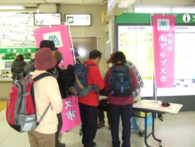 ◆ 甲府駅にて受付をする参加者の皆さん ◆ 山岳館で昼食中!!