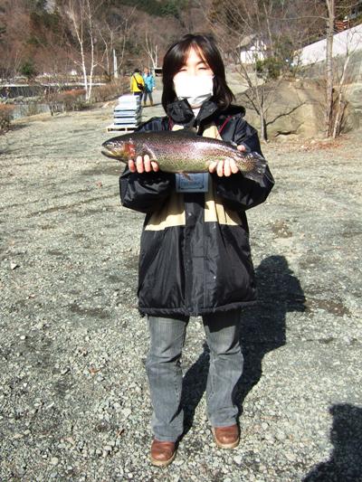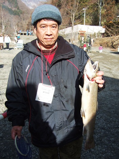 ヤマメ・イワナ・ニジマスの体長を競い合う催しにも多くの方々にエントリーしていただき、ヤマメ・イワナ部門では51.6cmのイワナを釣り上げた神奈川県茅ヶ崎市から参加いただいた貝沼さんが優勝されました。準優勝は 51.5cmのイワナを釣り上げた神奈川県横浜市から参加いただいた東さん。なんと優勝者 貝沼さんとは0.1cm差です。第3位は49cmのイワナを釣り上げた東京都東久留米市の渋井さんでした。ニジマス大物賞は48cmを釣り上げた篠原さんでした。上位入賞された皆様ばかりでなく、他の賞(飛び賞・特別賞)を受賞した皆様も含めまして、おめでとうございました。
