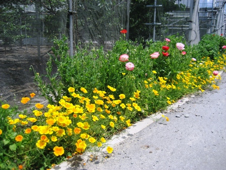 昨年11月、沿線に面する農園の敷地内に花菱草とポピーの種を蒔き、「咲き誇る花でお客様を迎えるための周辺整備」を進めてきました。