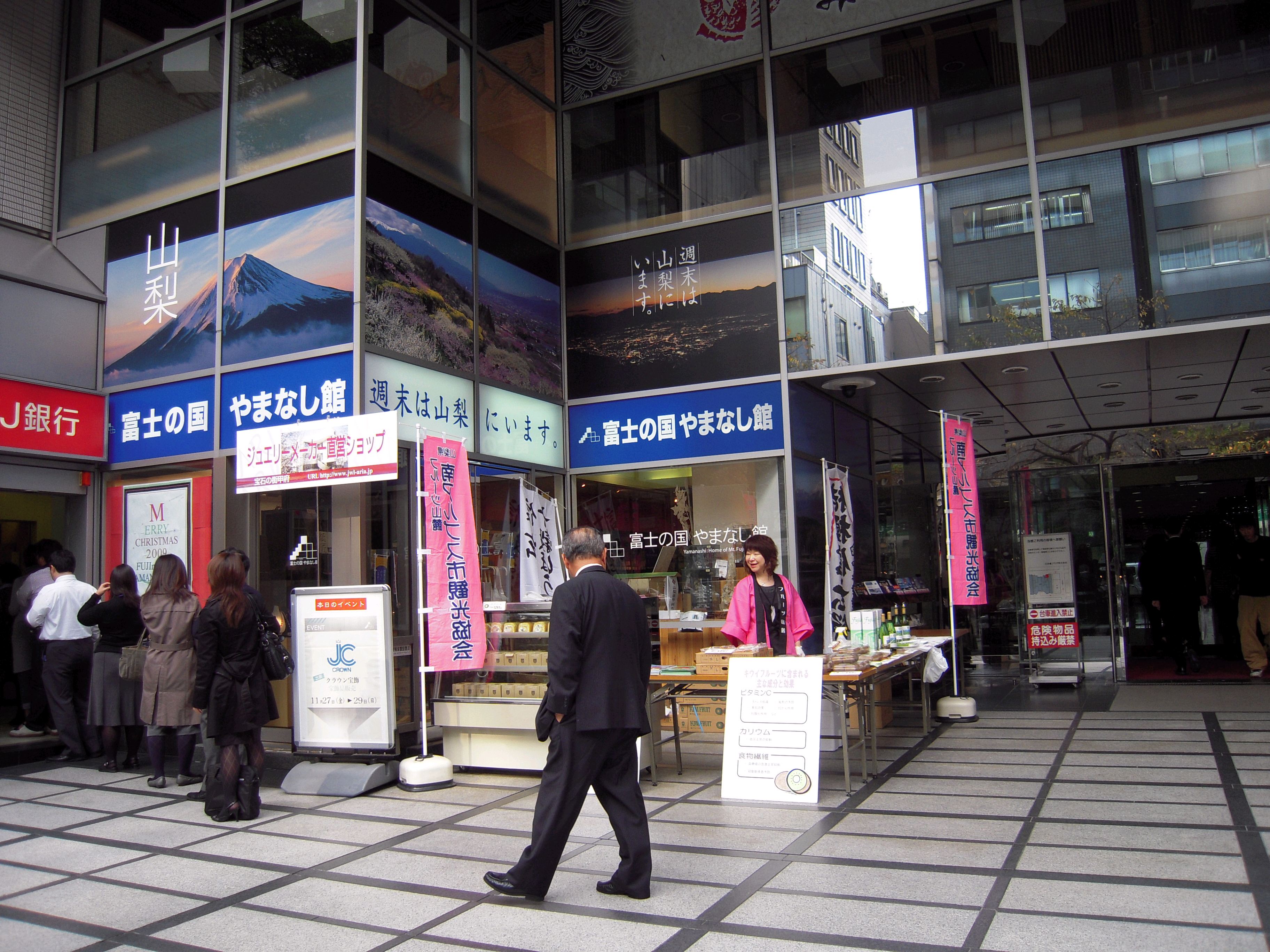 11月27日(木)・28(金)の2日間、中央区日本橋にある「富士の国やまなし館」で採れたてのキウイフルーツとキウイフルーツワイン、2日間限定のキウイフルーツたっぷりのロールケーキの販売を行い大変好評をいただきました。キウイフルーツは、ビタミンC・カリウム・食物繊維を含んでいますので、これからの季節にはおすすめです。