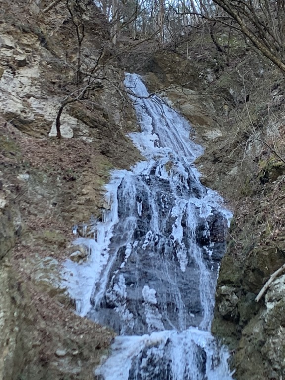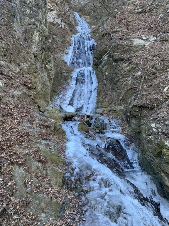 外側が凍結していますが、中心部は水が流れています。