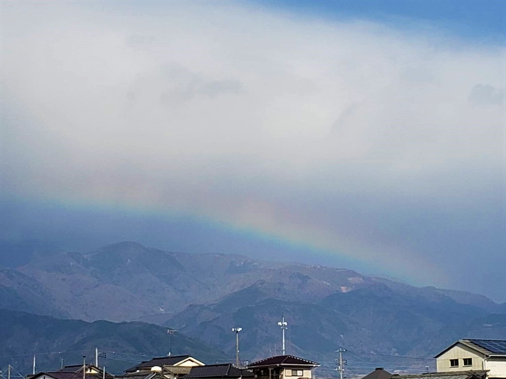 薄くて消えかかっていますが。虹を見ると幸せな気分になります。27日朝、西の空
