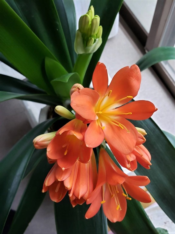 コロンとした背丈の短いチューリップ クンシランは多年草なので毎年楽しめます