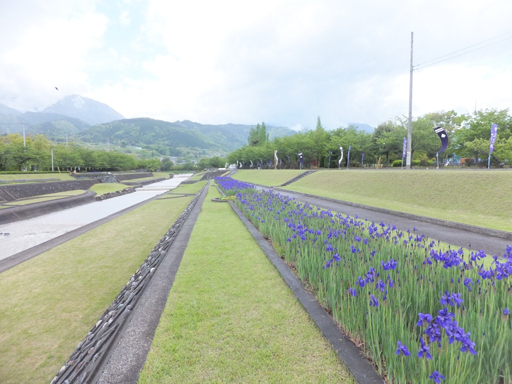 南アルプス市内を流れる滝沢川の河川敷に、約1kmにわたってアヤメが植えられています。