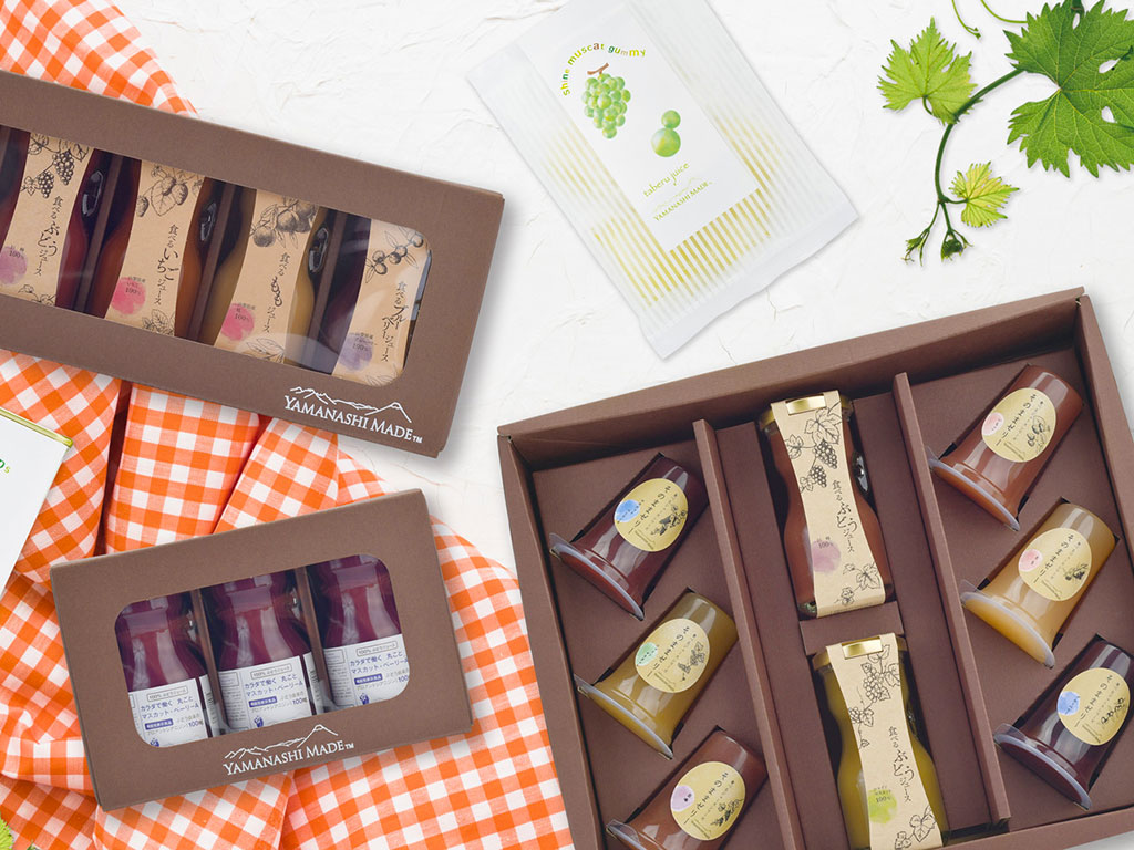 山梨県産果物を種も皮も丸ごと使用。添加物や保存料はもちろん、水も砂糖も一切不使用の果実100%。とろみのある濃厚な舌触りと素材本来の優しい甘さが自慢のジュース。