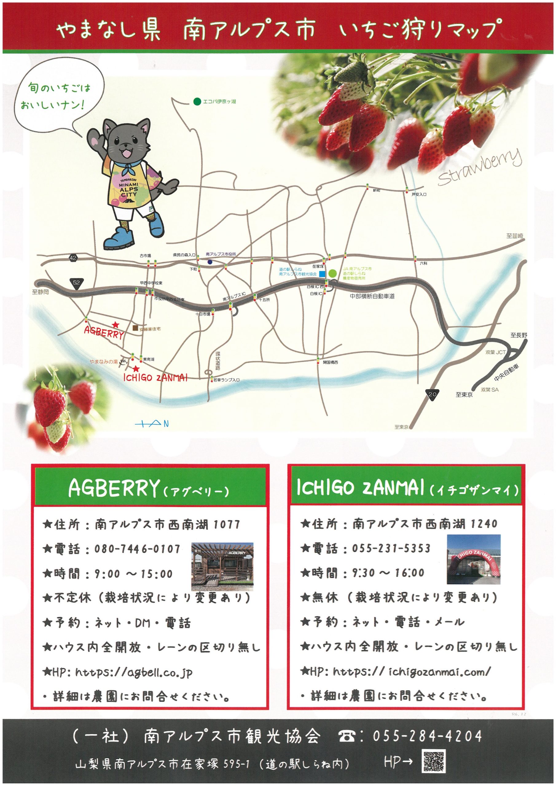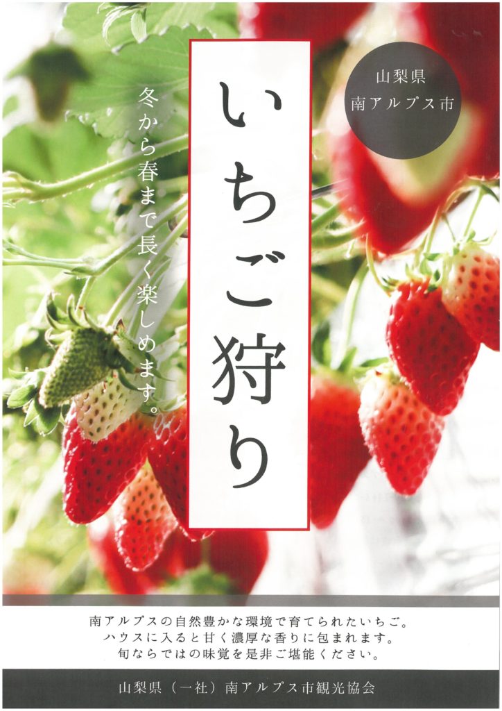 南アルプス市内には観光協会会員さまの大きなイチゴ農園が2ヶ所あります。